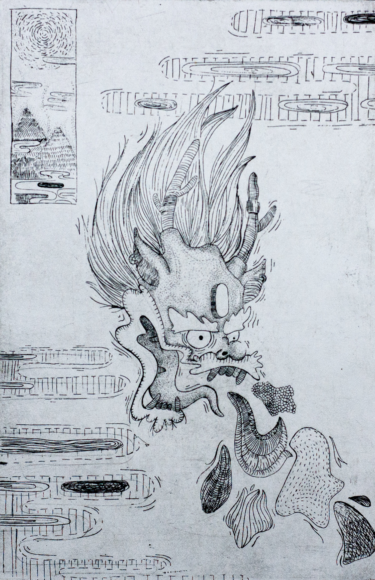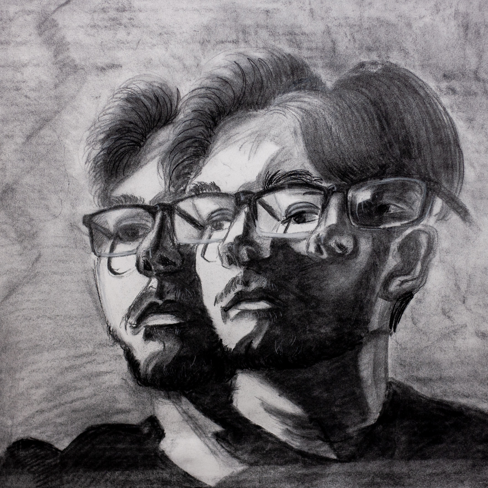Classwork from 2019-2020 charcoal, pen and ink, pastel, intaglio, and graphite
