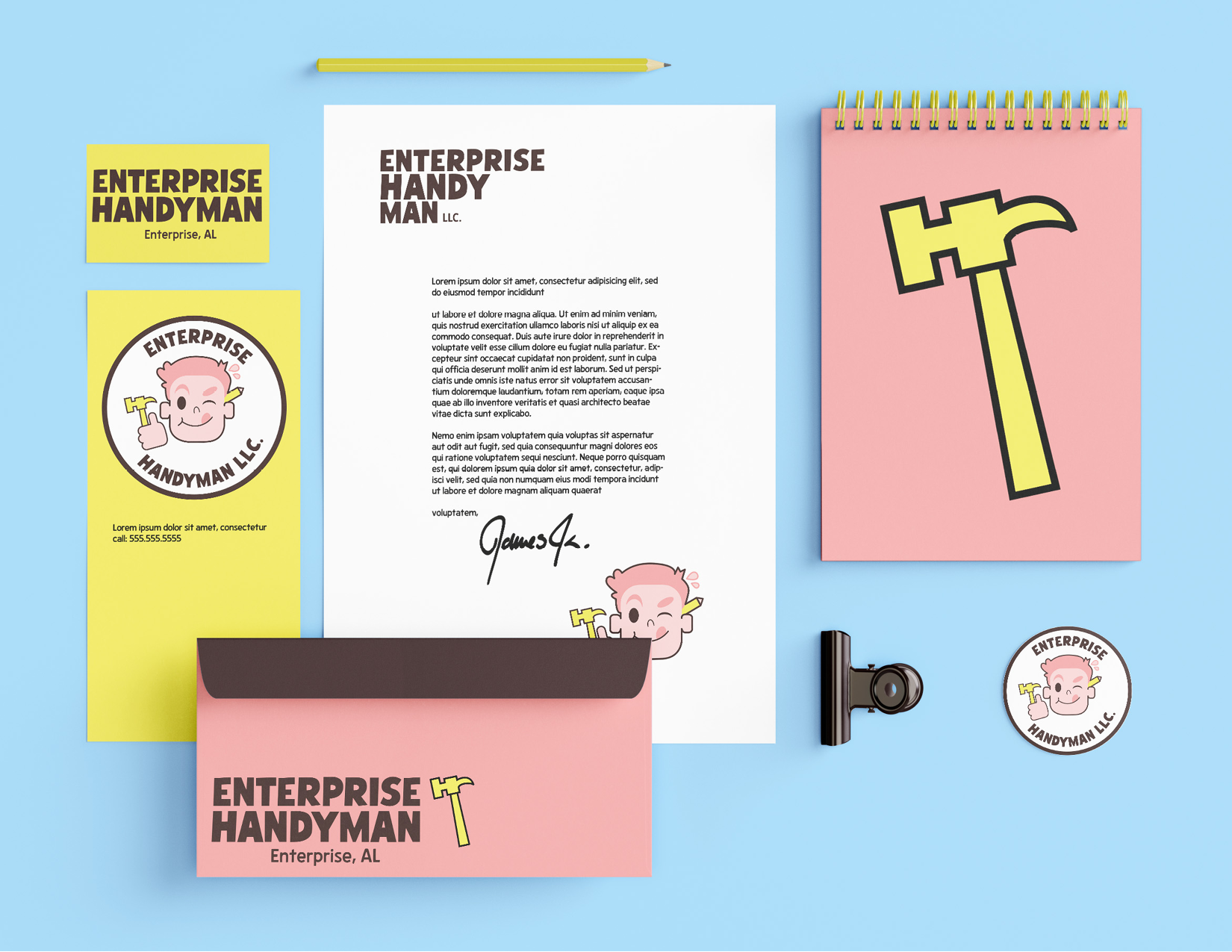 ENTERPRISE HANDYMAN is a brand Identity for a small construction service company based in Enterprise, Alabama.